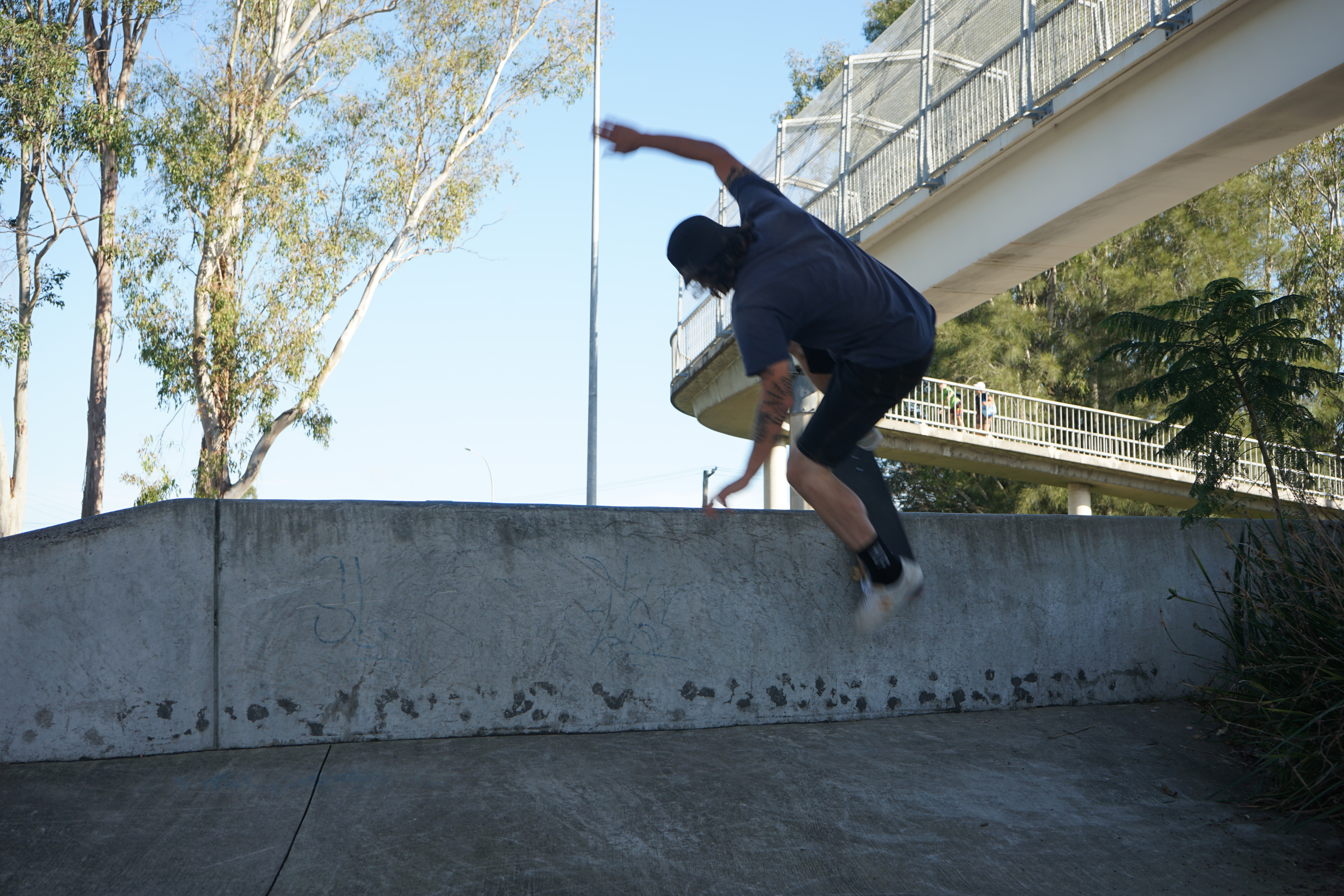 Naylor engaged career skaters, Adam Tabone and Connor Reeve to test movement experiments (skating) at numerous sites that flanked the Hunter River in and around the Maitland CBD. The skatable sites are a collision of the urban and ‘the wild’. The images from that multi-day experiment informed the artwork Muscle Memory.