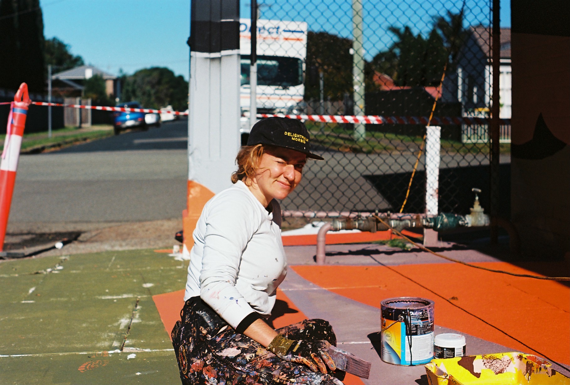 on the footpath the viewer can see a perfect circle painted over 7 different surfaces of the building. The “I get it” is an instant value exchange of between the viewer and the artwork. There is an inclusivity when people move their bodies around the space to make the circle line up. The viewer can shift around the space, either on foot, by bike or in a vehicle, manoeuvring from the view of a abstract shapes to a reveal a circle. This participation, over time, makes this a durational piece.